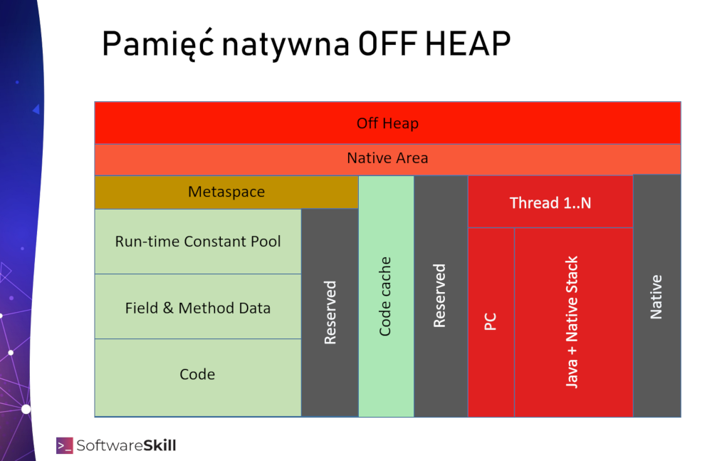 O ile sterta jest obszarem pamięci bliższym programisty (świadomie lub nie), o tyle pozostałe obszary pamięci wykorzystuje głównie JVM. W Javie istnieją techniki pozwalające na bezpośredni dostęp do pamięci natywnej, jednak zagadnienia te zdecydowanie wykraczają poza zakres niniejszego artykułu. Struktury natywne zostały wprowadzone w specyfikacji Java 8. Obszar pamięci natywnej off-cheap możemy podzielić na dwie grupy.